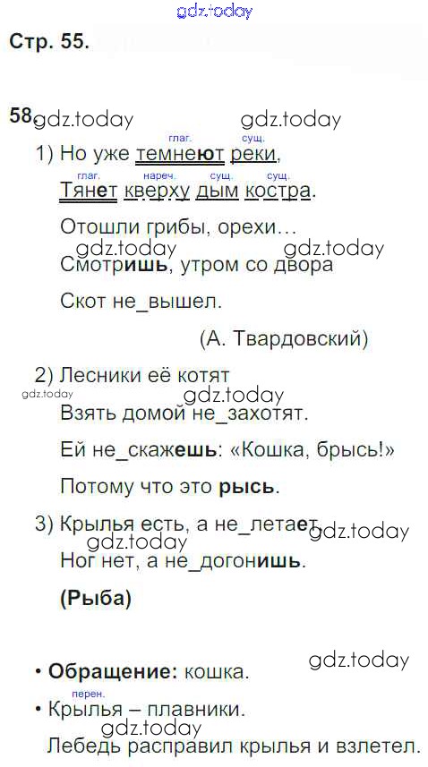 На страницах сайта gdz.today вы найдете учебный и вспомогательный материал, направленный на улучшения знаний школьной программы. ГДЗ - онлайн мир знаний Решение. Часть 2. Страницы 55 Рабочей тетради по Русскому языку для 4 класса Песняева, Анащенкова Просвещение УМК 2017