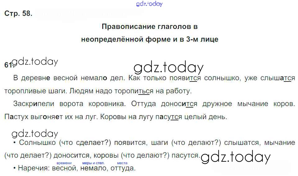 На страницах сайта gdz.today вы найдете учебный и вспомогательный материал, направленный на улучшения знаний школьной программы. ГДЗ - онлайн мир знаний Решение. Часть 2. Страницы 58 Рабочей тетради по Русскому языку для 4 класса Песняева, Анащенкова Просвещение УМК 2017