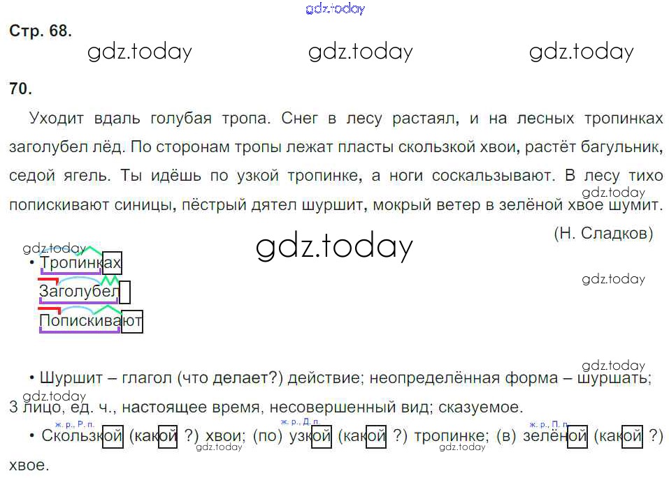 На страницах сайта gdz.today вы найдете учебный и вспомогательный материал, направленный на улучшения знаний школьной программы. ГДЗ - онлайн мир знаний Решение. Часть 2. Страницы 68 Рабочей тетради по Русскому языку для 4 класса Песняева, Анащенкова Просвещение УМК 2017