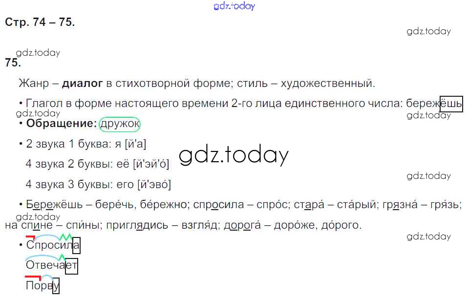 На страницах сайта gdz.today вы найдете учебный и вспомогательный материал, направленный на улучшения знаний школьной программы. ГДЗ - онлайн мир знаний Решение. Часть 2. Страницы 75 Рабочей тетради по Русскому языку для 4 класса Песняева, Анащенкова Просвещение УМК 2017
