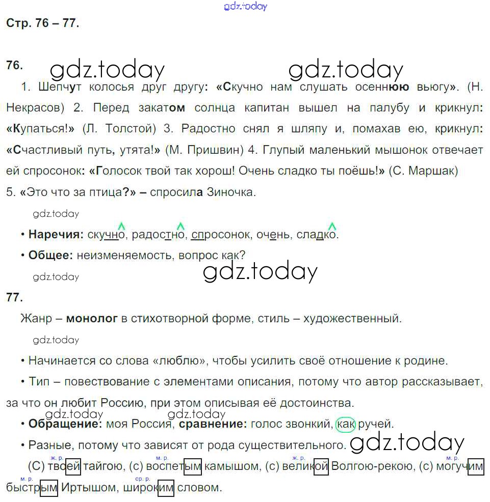 На страницах сайта gdz.today вы найдете учебный и вспомогательный материал, направленный на улучшения знаний школьной программы. ГДЗ - онлайн мир знаний Решение. Часть 2. Страницы 76 Рабочей тетради по Русскому языку для 4 класса Песняева, Анащенкова Просвещение УМК 2017