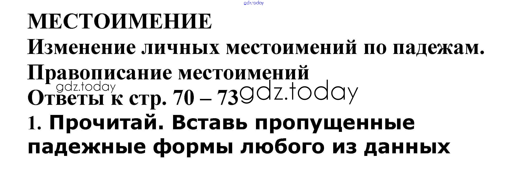 На страницах сайта gdz.today вы найдете учебный и вспомогательный материал, направленный на улучшения знаний школьной программы. ГДЗ - онлайн мир знаний Решение к теме "Личные местоимения" стр. 70 – 73 Проверочным работам по Русскому языку для 4 класса Канакина Просвещение Школа России 2017