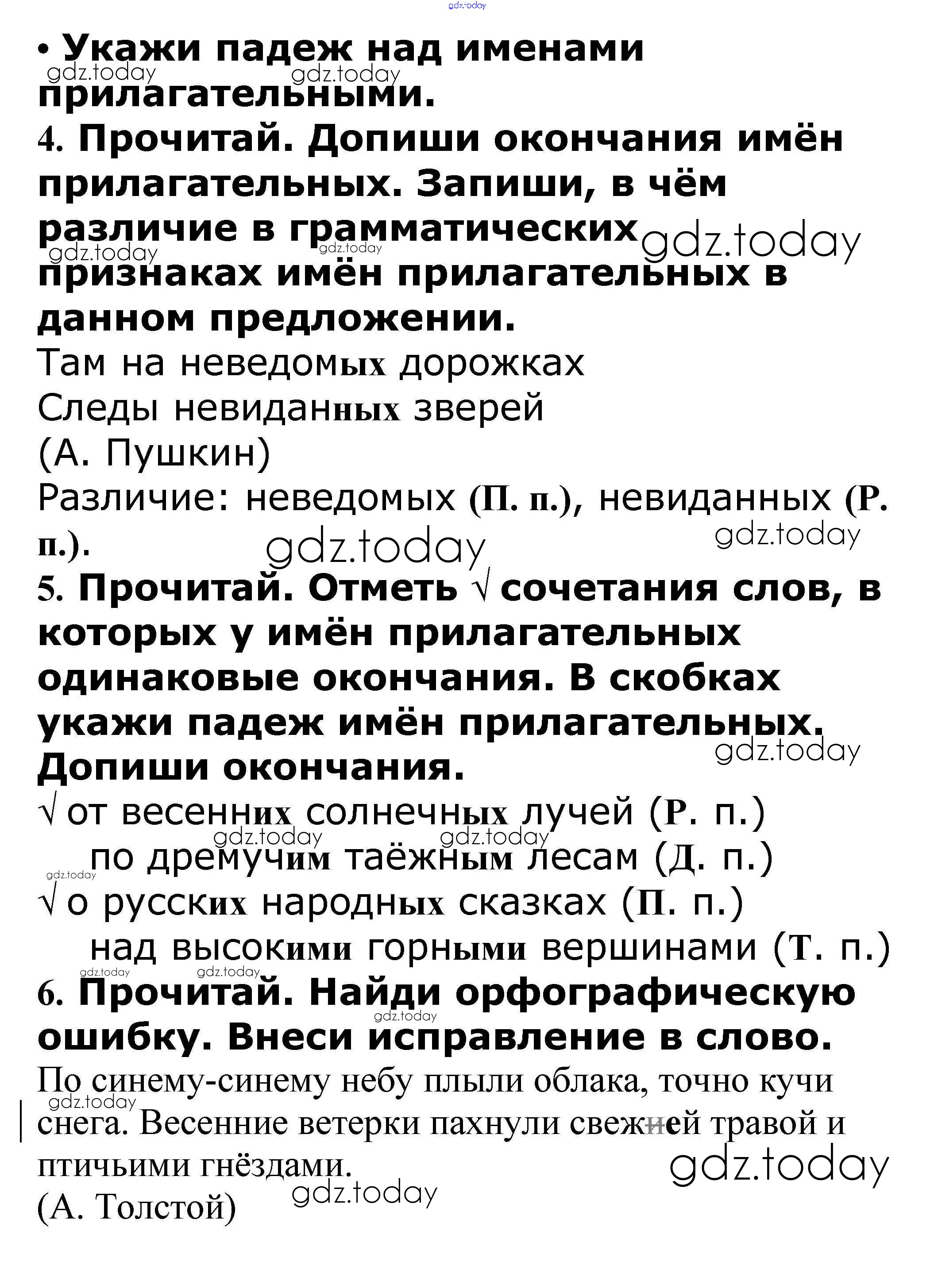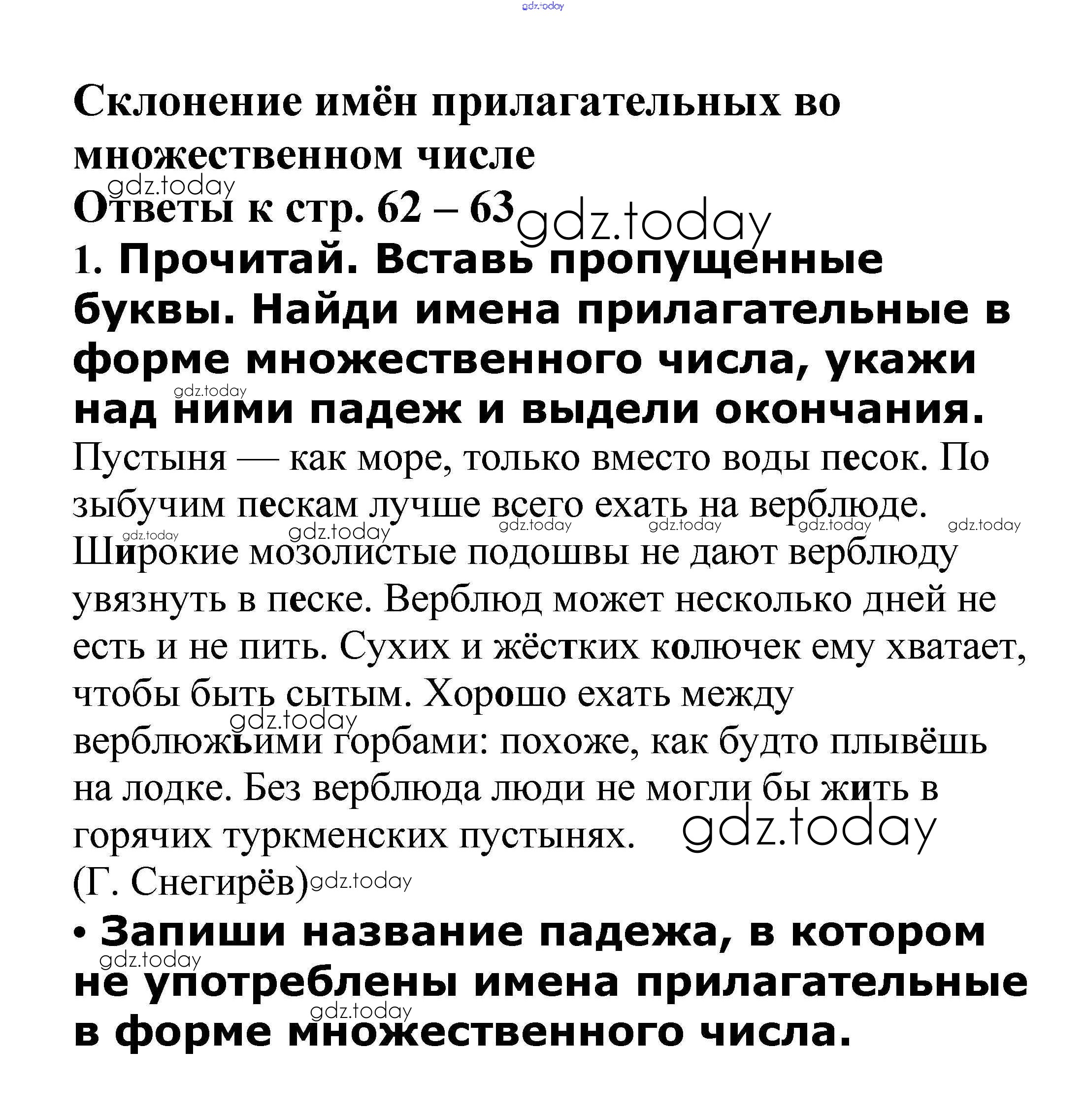 На страницах сайта gdz.today вы найдете учебный и вспомогательный материал, направленный на улучшения знаний школьной программы. ГДЗ - онлайн мир знаний Решение к теме "Имя прилагательное" стр. 62 – 63 Проверочным работам по Русскому языку для 4 класса Канакина Просвещение Школа России 2017