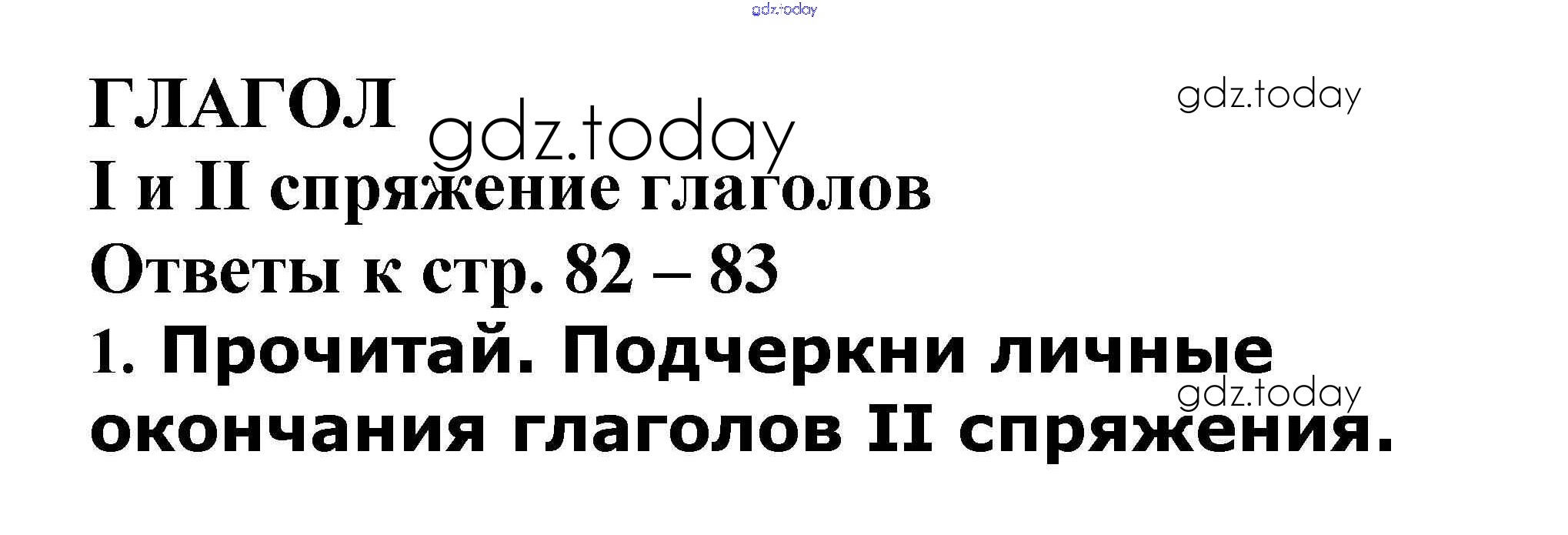 На страницах сайта gdz.today вы найдете учебный и вспомогательный материал, направленный на улучшения знаний школьной программы. ГДЗ - онлайн мир знаний Решение к теме "Глагол" стр. 82 – 83 Проверочным работам по Русскому языку для 4 класса Канакина Просвещение Школа России 2017