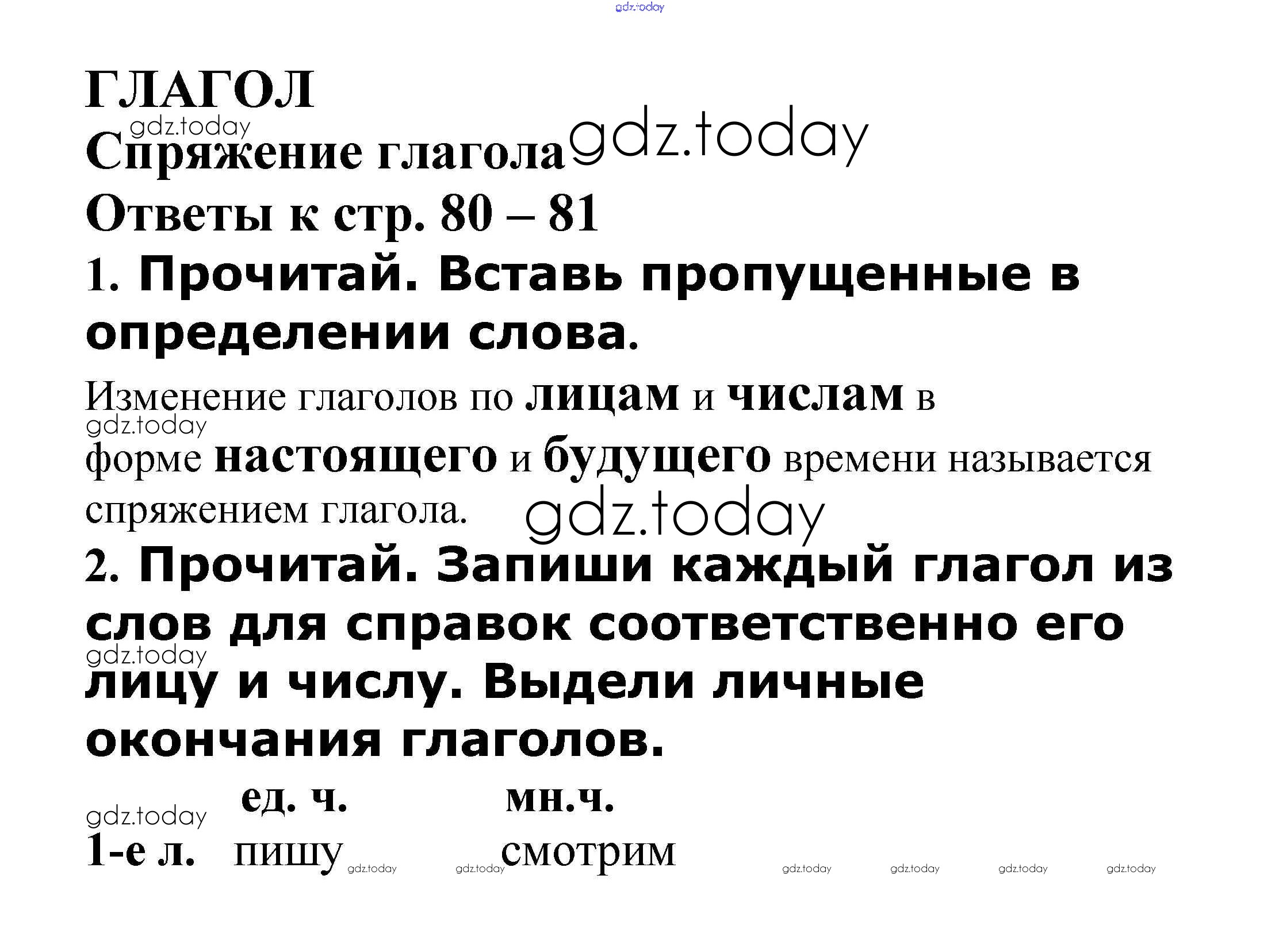 На страницах сайта gdz.today вы найдете учебный и вспомогательный материал, направленный на улучшения знаний школьной программы. ГДЗ - онлайн мир знаний Решение к теме "Глагол" стр. 80 – 81 Проверочным работам по Русскому языку для 4 класса Канакина Просвещение Школа России 2017