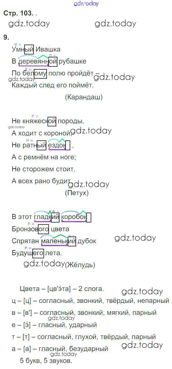 На страницах сайта gdz.today вы найдете учебный и вспомогательный материал, направленный на улучшения знаний школьной программы. ГДЗ - онлайн мир знаний Решение к части 1. Страницы 103 Проверочным работам по Русскому языку для 4 класса Тихомирова Экзамен УМК 2014