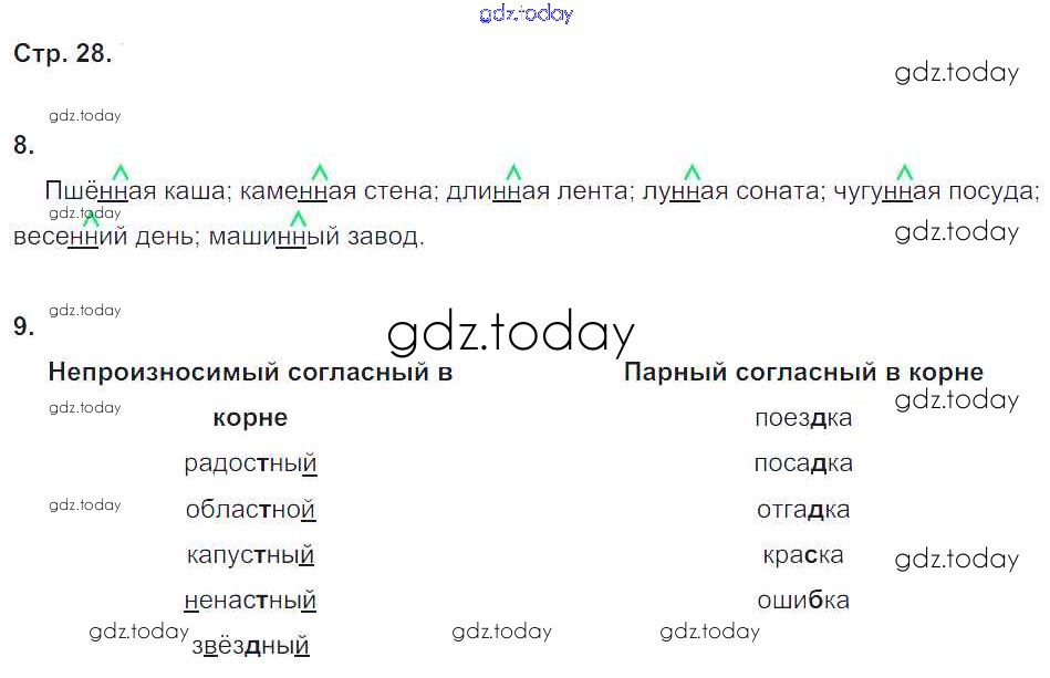 На страницах сайта gdz.today вы найдете учебный и вспомогательный материал, направленный на улучшения знаний школьной программы. ГДЗ - онлайн мир знаний Решение к части 1. Страницы 28 Проверочным работам по Русскому языку для 4 класса Тихомирова Экзамен УМК 2014