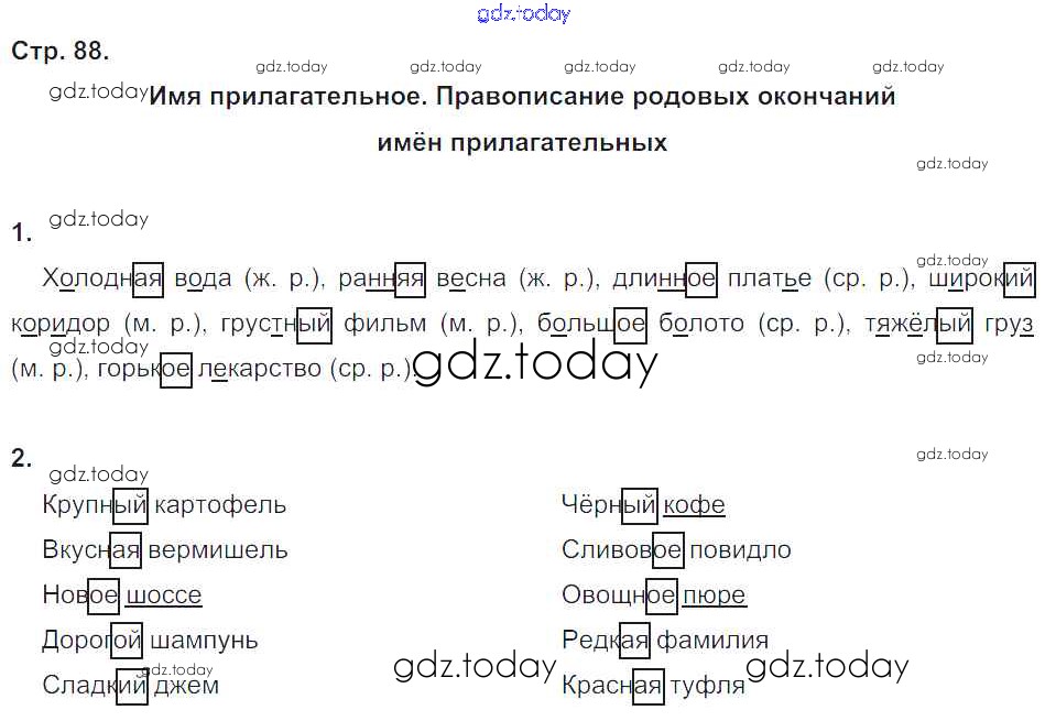 На страницах сайта gdz.today вы найдете учебный и вспомогательный материал, направленный на улучшения знаний школьной программы. ГДЗ - онлайн мир знаний Решение к части 1. Страницы 88 Проверочным работам по Русскому языку для 4 класса Тихомирова Экзамен УМК 2014