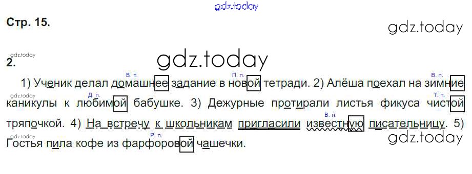 На страницах сайта gdz.today вы найдете учебный и вспомогательный материал, направленный на улучшения знаний школьной программы. ГДЗ - онлайн мир знаний Решение к части 2. Страницы 15 Проверочным работам по Русскому языку для 4 класса Тихомирова Экзамен УМК 2014