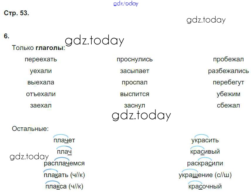 На страницах сайта gdz.today вы найдете учебный и вспомогательный материал, направленный на улучшения знаний школьной программы. ГДЗ - онлайн мир знаний Решение к части 2. Страницы 53 Проверочным работам по Русскому языку для 4 класса Тихомирова Экзамен УМК 2014