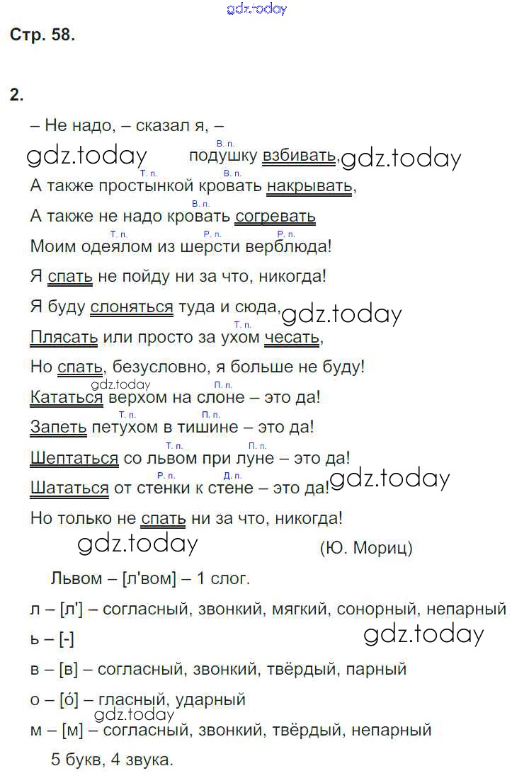 На страницах сайта gdz.today вы найдете учебный и вспомогательный материал, направленный на улучшения знаний школьной программы. ГДЗ - онлайн мир знаний Решение к части 2. Страницы 58 Проверочным работам по Русскому языку для 4 класса Тихомирова Экзамен УМК 2014