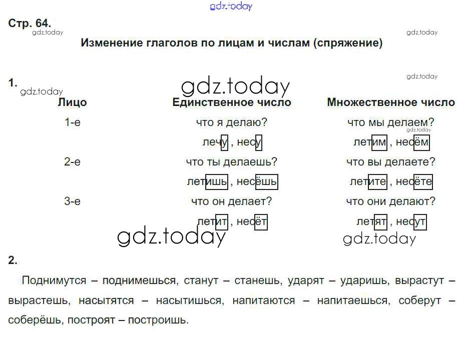 На страницах сайта gdz.today вы найдете учебный и вспомогательный материал, направленный на улучшения знаний школьной программы. ГДЗ - онлайн мир знаний Решение к части 2. Страницы 64 Проверочным работам по Русскому языку для 4 класса Тихомирова Экзамен УМК 2014