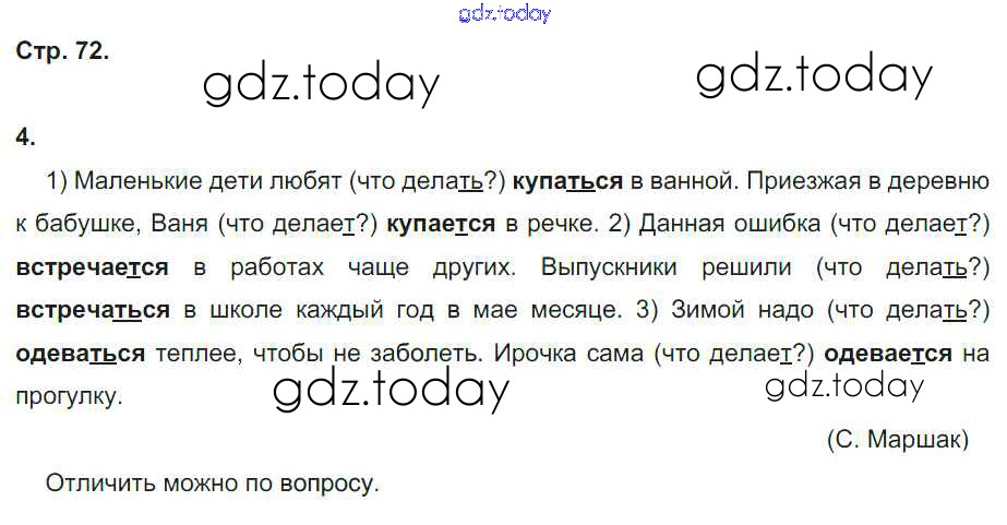 На страницах сайта gdz.today вы найдете учебный и вспомогательный материал, направленный на улучшения знаний школьной программы. ГДЗ - онлайн мир знаний Решение к части 2. Страницы 72 Проверочным работам по Русскому языку для 4 класса Тихомирова Экзамен УМК 2014