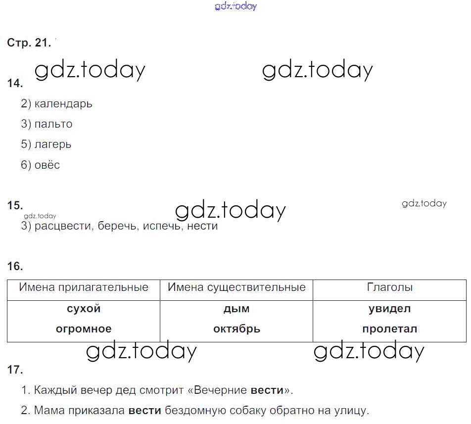 Ответы к Страницы (решение) 21 Рабочей тетради по Русскому языку для 4 класса Кузнецова Просвещение 2017