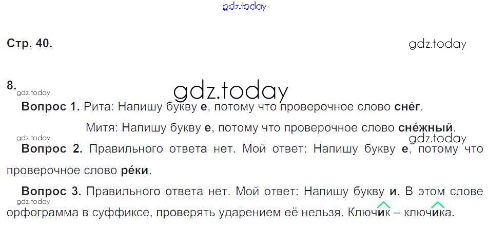 Ответы к Страницы (решение) 40 Рабочей тетради по Русскому языку для 4 класса Кузнецова Просвещение 2017