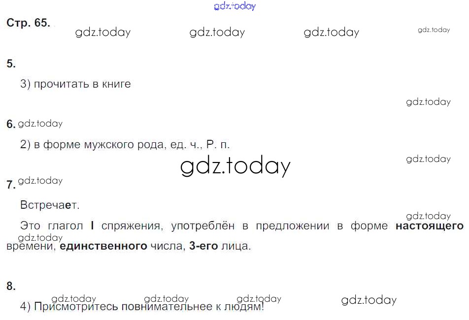 Ответы к Страницы (решение) 65 Рабочей тетради по Русскому языку для 4 класса Кузнецова Просвещение 2017