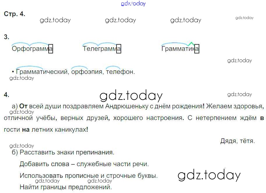 На страницах сайта gdz.today вы найдете учебный и вспомогательный материал, направленный на улучшения знаний школьной программы. ГДЗ - онлайн мир знаний Решение к части 1. Страницы тетради 4 Рабочей тетради по Русскому языку для 4 класса Нечаева, Воскресенская Фёдоров 2014
