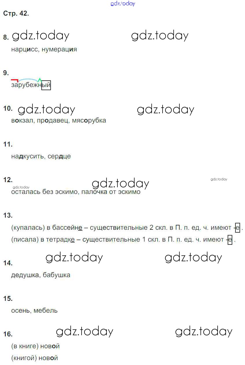 Ответы к Решение к части 1. Страницы тетради 42 Рабочей тетради по Русскому языку для 4 класса Нечаева, Воскресенская Фёдоров 2014