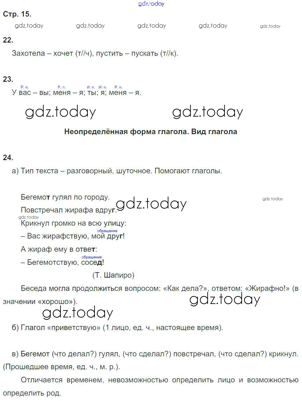 На страницах сайта gdz.today вы найдете учебный и вспомогательный материал, направленный на улучшения знаний школьной программы. ГДЗ - онлайн мир знаний Решение к части 2. Страницы тетради 15 Рабочей тетради по Русскому языку для 4 класса Нечаева, Воскресенская Фёдоров 2014