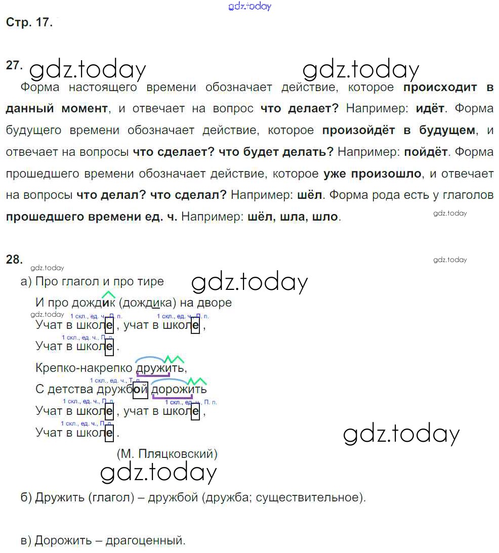 На страницах сайта gdz.today вы найдете учебный и вспомогательный материал, направленный на улучшения знаний школьной программы. ГДЗ - онлайн мир знаний Решение к части 2. Страницы тетради 17 Рабочей тетради по Русскому языку для 4 класса Нечаева, Воскресенская Фёдоров 2014