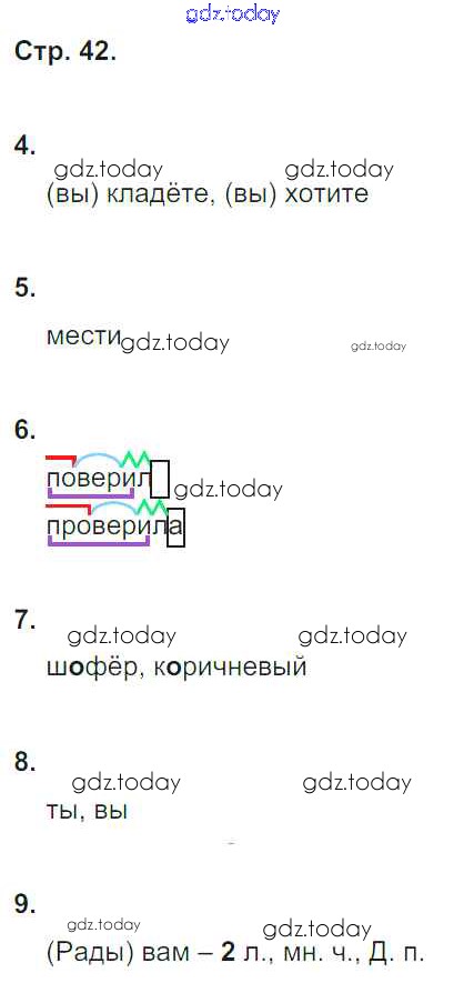 Ответы к Решение к части 2. Страницы тетради 42 Рабочей тетради по Русскому языку для 4 класса Нечаева, Воскресенская Фёдоров 2014