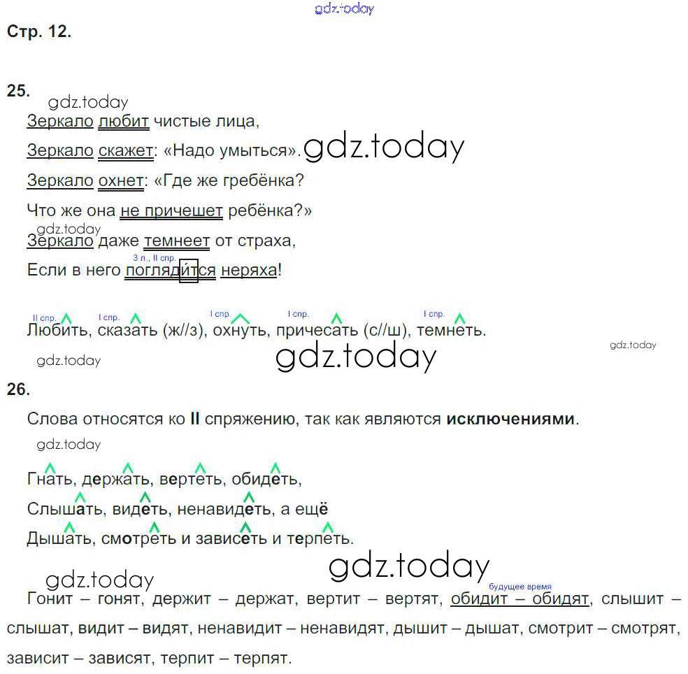 На страницах сайта gdz.today вы найдете учебный и вспомогательный материал, направленный на улучшения знаний школьной программы. ГДЗ - онлайн мир знаний Решение к части 3. Страницы тетради 12 Рабочей тетради по Русскому языку для 4 класса Нечаева, Воскресенская Фёдоров 2014