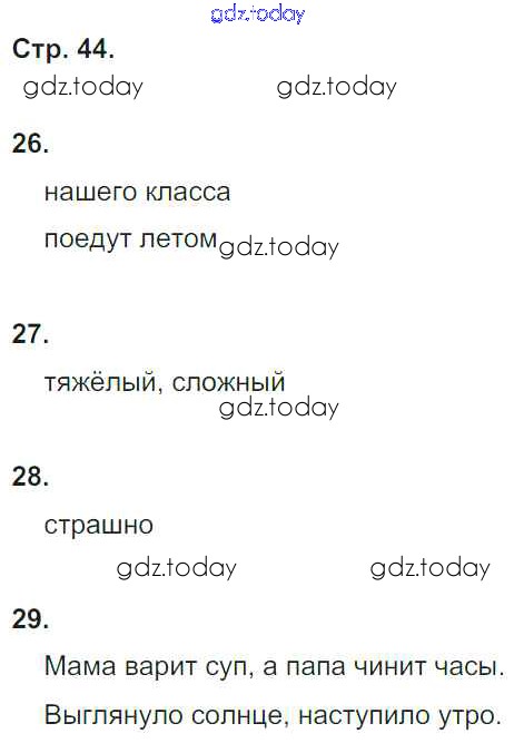 На страницах сайта gdz.today вы найдете учебный и вспомогательный материал, направленный на улучшения знаний школьной программы. ГДЗ - онлайн мир знаний Решение к части 3. Страницы тетради 44 Рабочей тетради по Русскому языку для 4 класса Нечаева, Воскресенская Фёдоров 2014