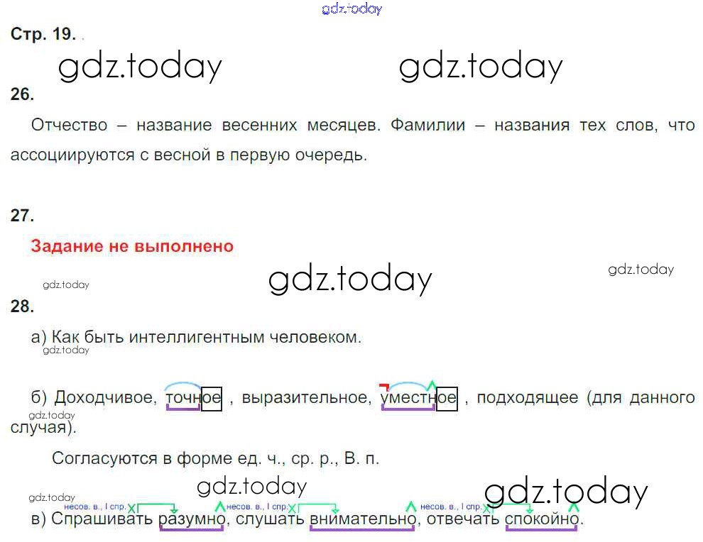 На страницах сайта gdz.today вы найдете учебный и вспомогательный материал, направленный на улучшения знаний школьной программы. ГДЗ - онлайн мир знаний Решение к части 4. Страницы тетради 19 Рабочей тетради по Русскому языку для 4 класса Нечаева, Воскресенская Фёдоров 2014