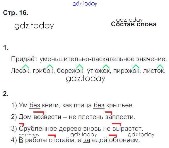 Ответы к Страницы (решение) 16 Рабочей тетради по Русскому языку для 4 класса Тихомирова Экзамен УМК 2014