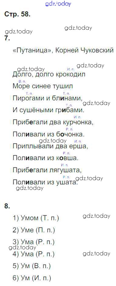 Ответы к Страницы (решение) 58 Рабочей тетради по Русскому языку для 4 класса Тихомирова Экзамен УМК 2014