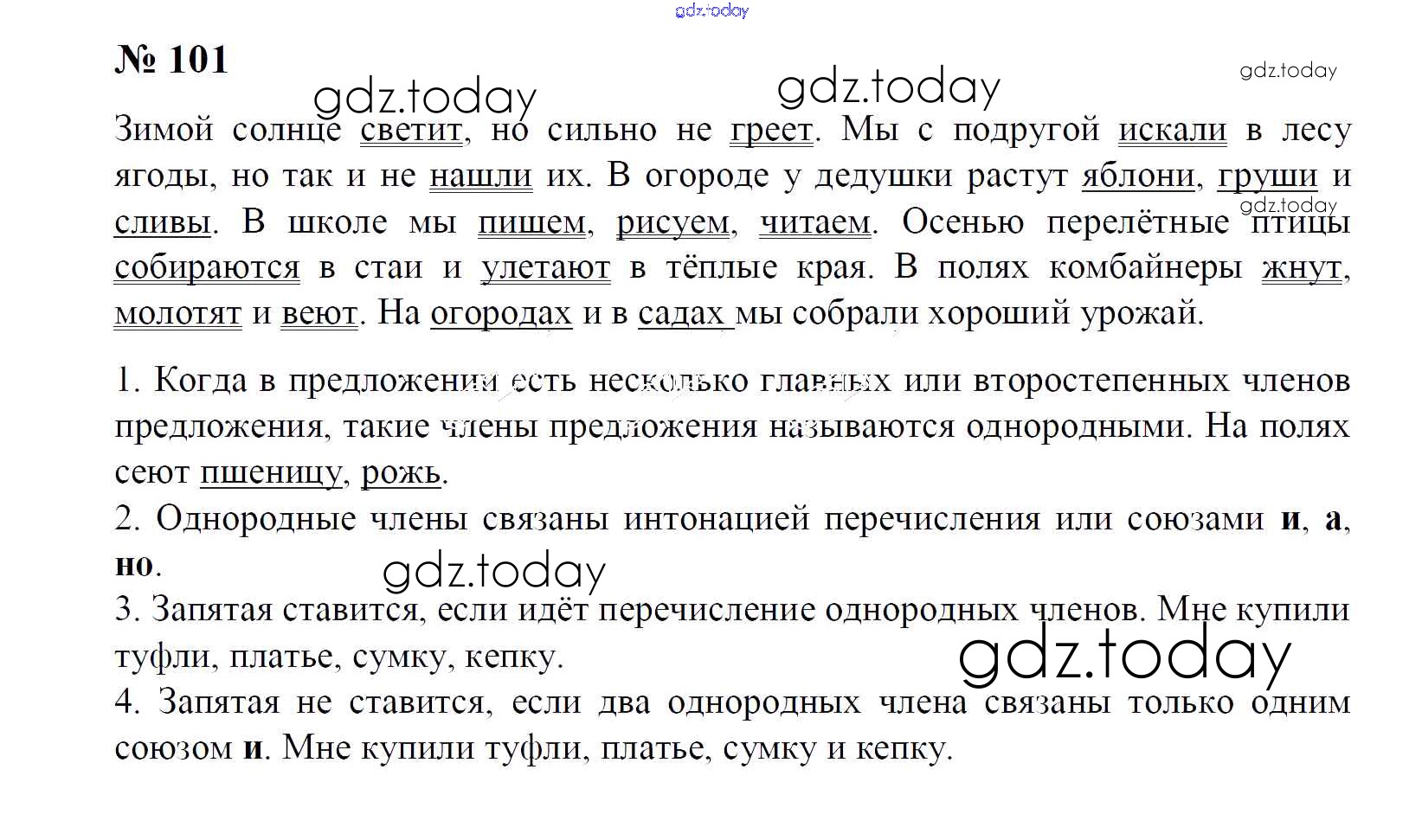 На страницах сайта gdz.today вы найдете учебный и вспомогательный материал, направленный на улучшения знаний школьной программы. ГДЗ - онлайн мир знаний Часть 1. Решение к упражнениям 101 Учебнику по Русскому языку для 4 класса Рамзаева Дрофа 2014