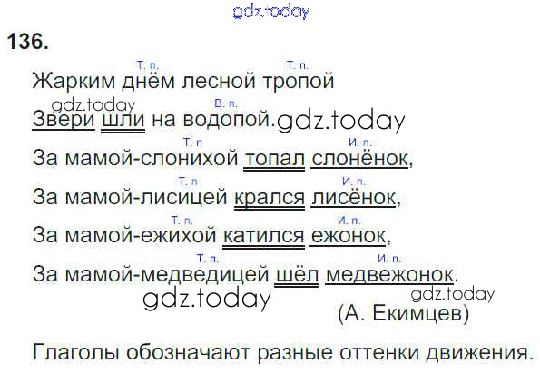 На страницах сайта gdz.today вы найдете учебный и вспомогательный материал, направленный на улучшения знаний школьной программы. ГДЗ - онлайн мир знаний Часть 1. Решение к упражнениям 136 Учебнику по Русскому языку для 4 класса Рамзаева Дрофа 2014