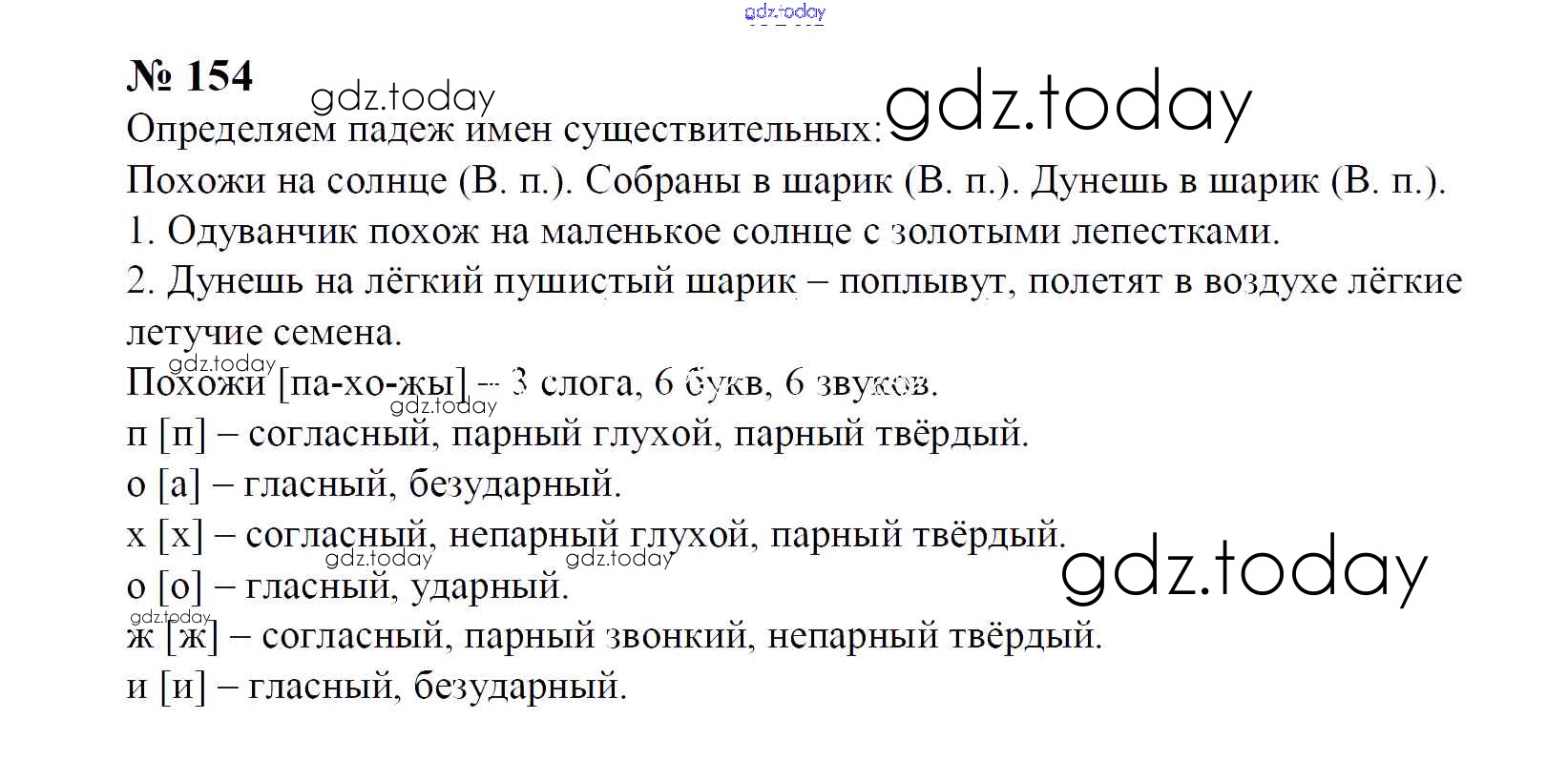 Ответы к Часть 1. Решение к упражнениям 154 Учебнику по Русскому языку для 4 класса Рамзаева Дрофа 2014