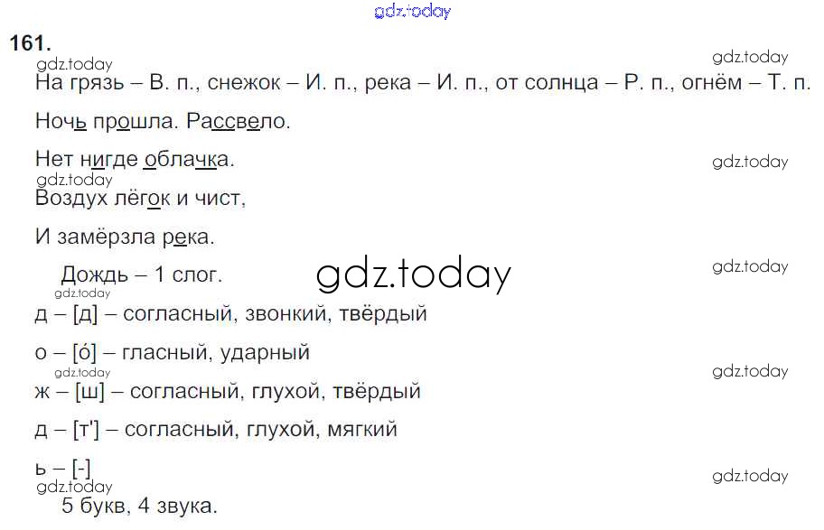На страницах сайта gdz.today вы найдете учебный и вспомогательный материал, направленный на улучшения знаний школьной программы. ГДЗ - онлайн мир знаний Часть 1. Решение к упражнениям 161 Учебнику по Русскому языку для 4 класса Рамзаева Дрофа 2014