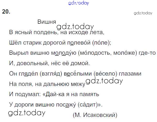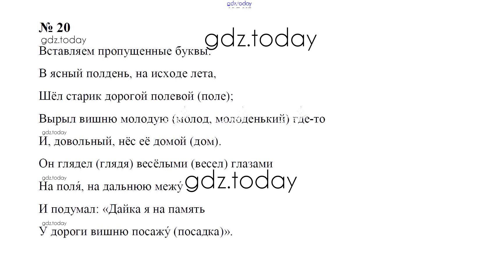 На страницах сайта gdz.today вы найдете учебный и вспомогательный материал, направленный на улучшения знаний школьной программы. ГДЗ - онлайн мир знаний Часть 1. Решение к упражнениям 20 Учебнику по Русскому языку для 4 класса Рамзаева Дрофа 2014