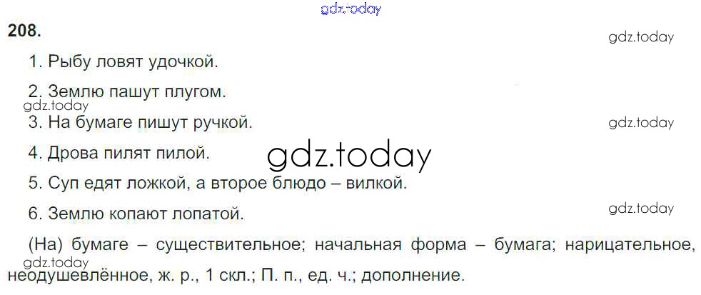 Ответы к Часть 1. Решение к упражнениям 208 Учебнику по Русскому языку для 4 класса Рамзаева Дрофа 2014