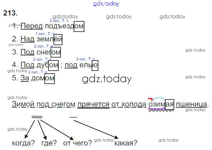 Ответы к Часть 1. Решение к упражнениям 213 Учебнику по Русскому языку для 4 класса Рамзаева Дрофа 2014