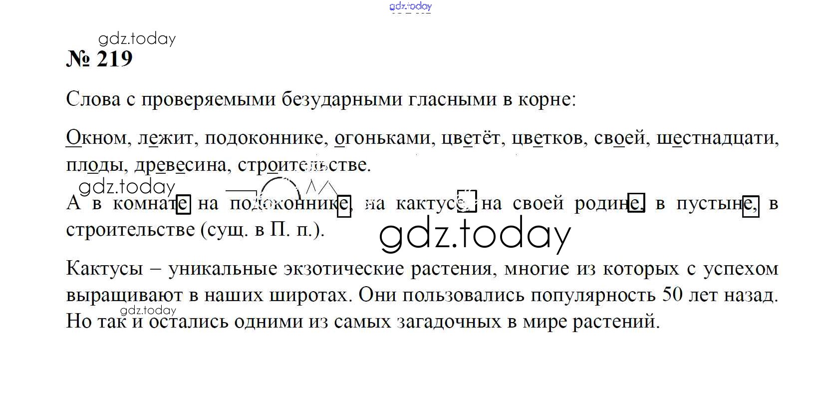 На страницах сайта gdz.today вы найдете учебный и вспомогательный материал, направленный на улучшения знаний школьной программы. ГДЗ - онлайн мир знаний Часть 1. Решение к упражнениям 219 Учебнику по Русскому языку для 4 класса Рамзаева Дрофа 2014