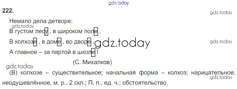 На страницах сайта gdz.today вы найдете учебный и вспомогательный материал, направленный на улучшения знаний школьной программы. ГДЗ - онлайн мир знаний Часть 1. Решение к упражнениям 222 Учебнику по Русскому языку для 4 класса Рамзаева Дрофа 2014