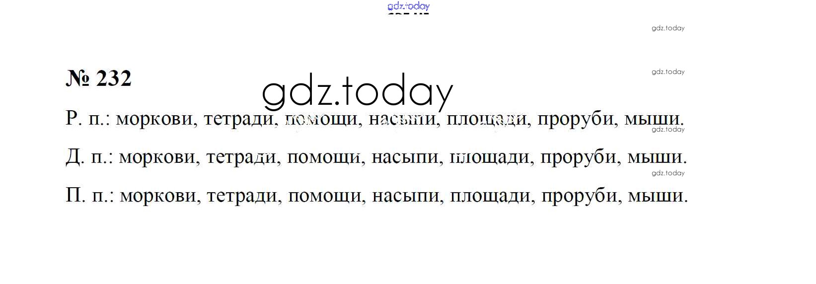На страницах сайта gdz.today вы найдете учебный и вспомогательный материал, направленный на улучшения знаний школьной программы. ГДЗ - онлайн мир знаний Часть 1. Решение к упражнениям 232 Учебнику по Русскому языку для 4 класса Рамзаева Дрофа 2014
