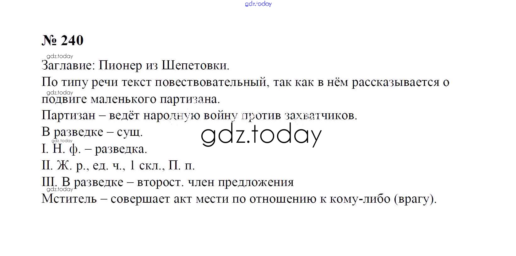 На страницах сайта gdz.today вы найдете учебный и вспомогательный материал, направленный на улучшения знаний школьной программы. ГДЗ - онлайн мир знаний Часть 1. Решение к упражнениям 240 Учебнику по Русскому языку для 4 класса Рамзаева Дрофа 2014