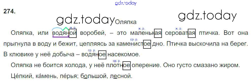 Ответы к Часть 1. Решение к упражнениям 274 Учебнику по Русскому языку для 4 класса Рамзаева Дрофа 2014