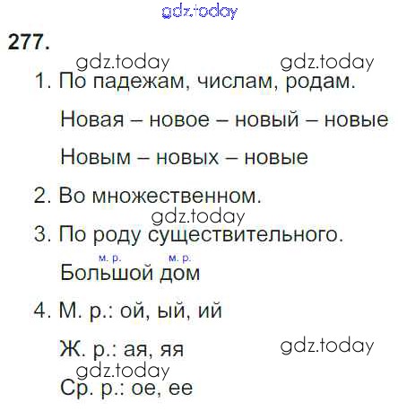 Ответы к Часть 1. Решение к упражнениям 277 Учебнику по Русскому языку для 4 класса Рамзаева Дрофа 2014