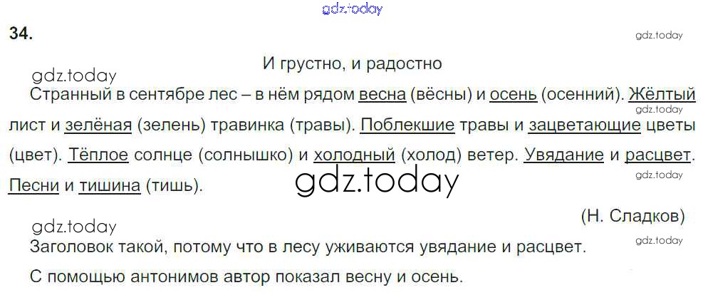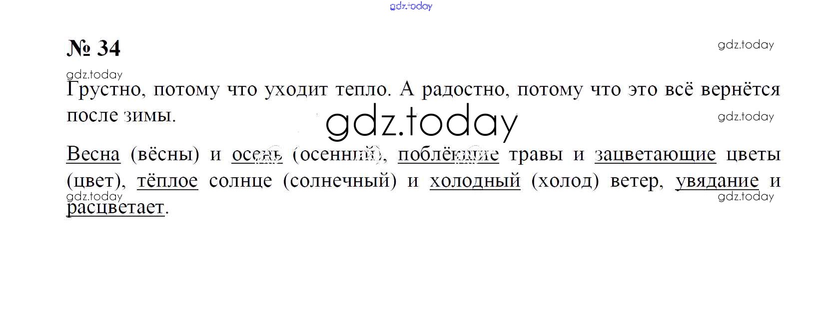 Ответы к Часть 1. Решение к упражнениям 34 Учебнику по Русскому языку для 4 класса Рамзаева Дрофа 2014