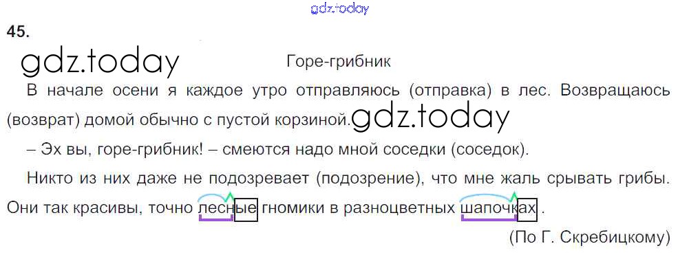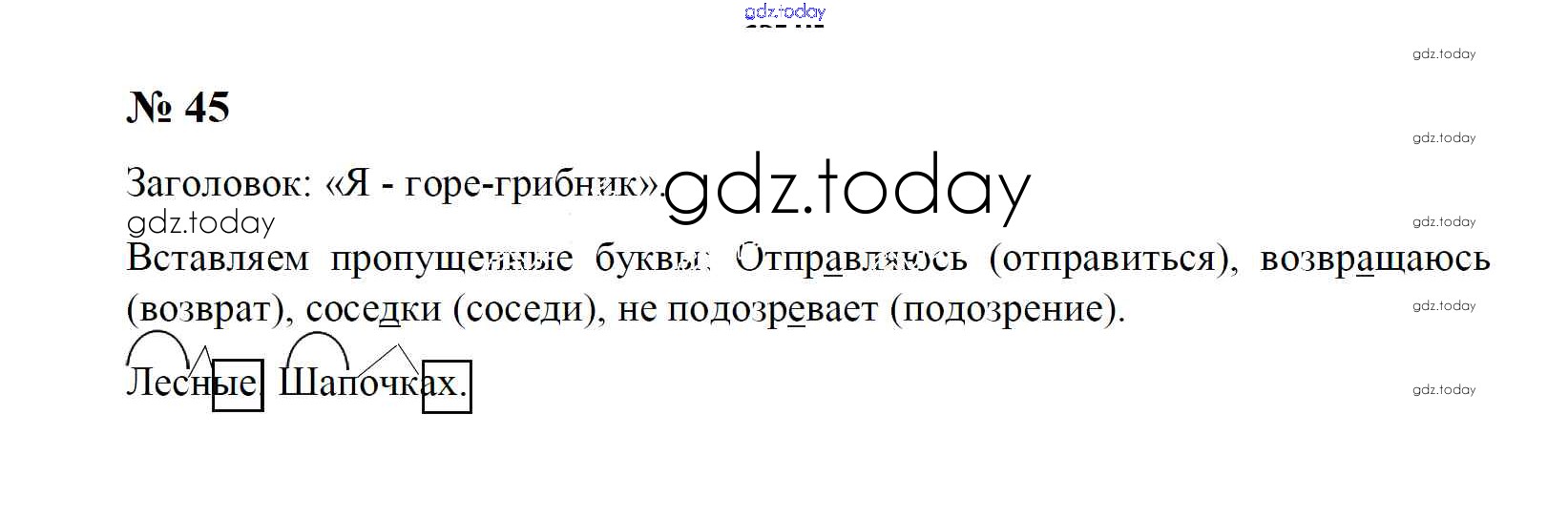 Ответы к Часть 1. Решение к упражнениям 45 Учебнику по Русскому языку для 4 класса Рамзаева Дрофа 2014