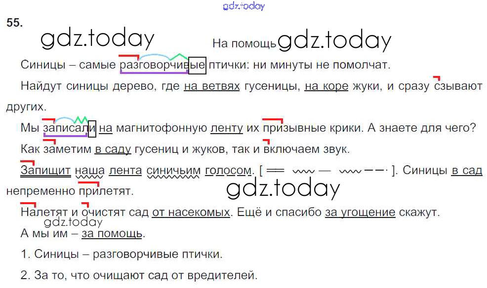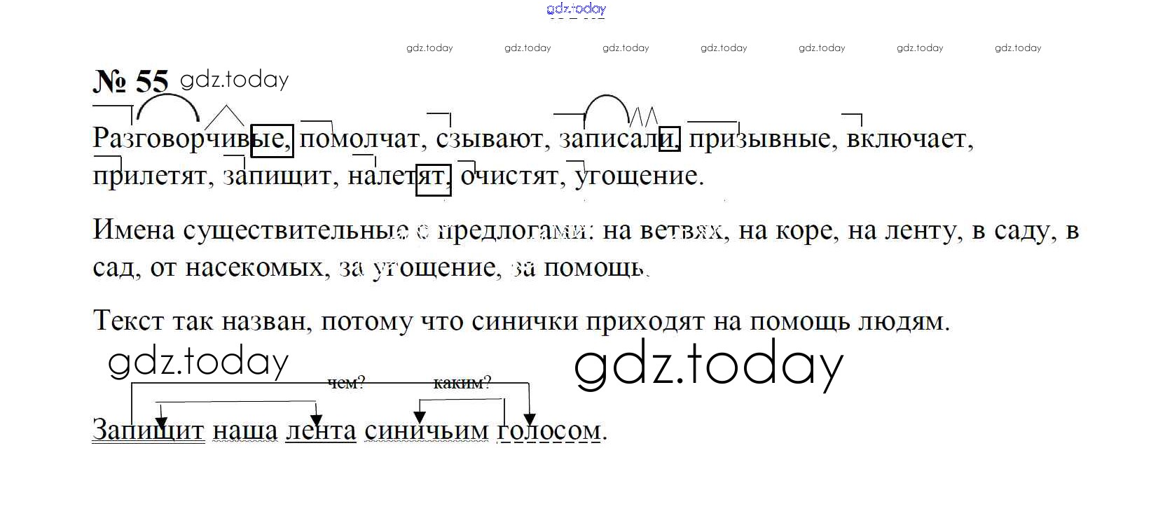 Ответы к Часть 1. Решение к упражнениям 55 Учебнику по Русскому языку для 4 класса Рамзаева Дрофа 2014