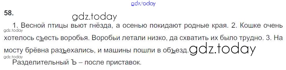 Ответы к Часть 1. Решение к упражнениям 58 Учебнику по Русскому языку для 4 класса Рамзаева Дрофа 2014
