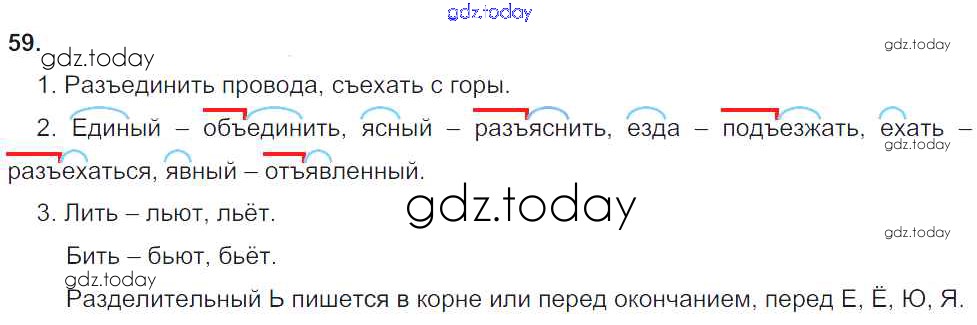 Ответы к Часть 1. Решение к упражнениям 59 Учебнику по Русскому языку для 4 класса Рамзаева Дрофа 2014