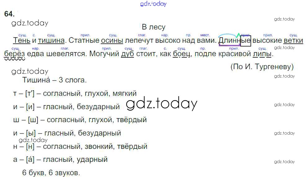 Ответы к Часть 1. Решение к упражнениям 64 Учебнику по Русскому языку для 4 класса Рамзаева Дрофа 2014