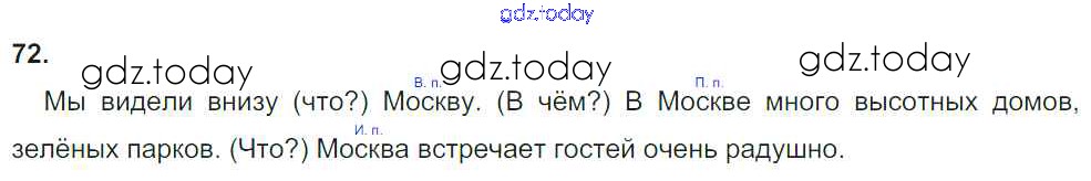 На страницах сайта gdz.today вы найдете учебный и вспомогательный материал, направленный на улучшения знаний школьной программы. ГДЗ - онлайн мир знаний Часть 1. Решение к упражнениям 72 Учебнику по Русскому языку для 4 класса Рамзаева Дрофа 2014